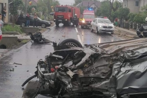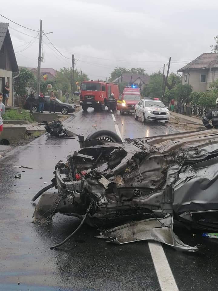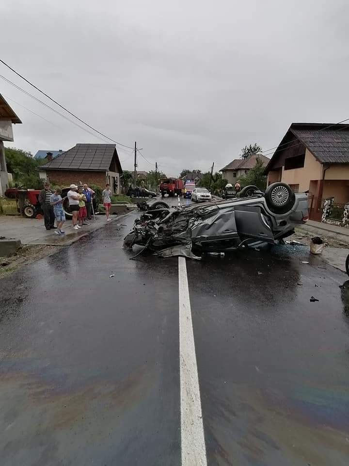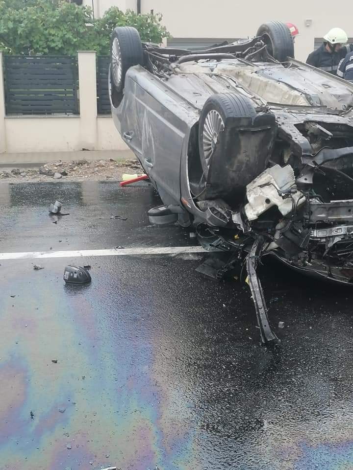 Unul dintre autoturismele implicate în accidentul de circulație este răsturnat pe plafon. La fața locului se deplasează forțe de intervenție, echipaje de pompieri, medicale, dar și de poliție. Circulația rutieră este complet blocată!