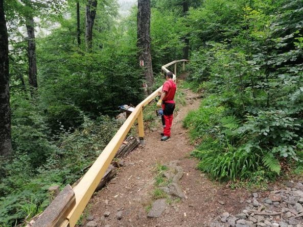 „Așa cum am promis încă de săptămâna trecută, la finalul careia mâna curentă/ balustrada a fost reabilitată în totalitate. În această săptămână, salvatorii montani angajați ai SPJ Salvamont Maramureș au vopsit/lăcuit lemnul balustradei și au curățat traseul de resturile rezultate în urma reabilitării.