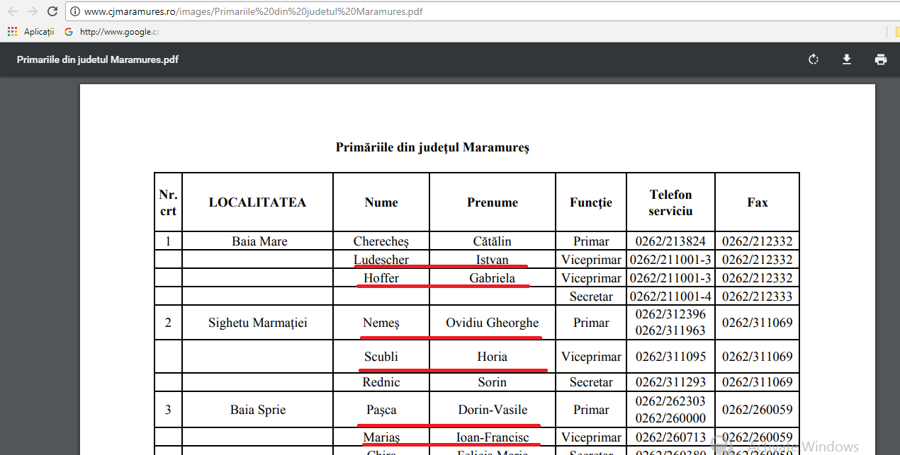 Mă sună un coleg de la Centrul Român pentru Jurnalism de Investigație, să-mi ceară contactele de la câteva primării din județ. Mă prinde departe de „agendă”, dar găsesc o soluție salvatoare: „intră pe site-ul Consiliului Județean Maramureș, pe coloana din stânga găsești Structura administrativă, dai click pe ea și, în josul paginii deschise, găsești contactele tuturor primăriilor din județ” ● „Ce bine că le aveți centralizate, că așa, primărie cu primărie, puteam săpa și eu pe net” – îmi mulțumește omul.
