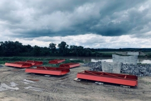 Efectele vremii capricioase: Ploile torențiale încurcă lucrările la podul peste Someș de la Seini, chiar dacă acestea sunt în grafic (GALERIE FOTO)