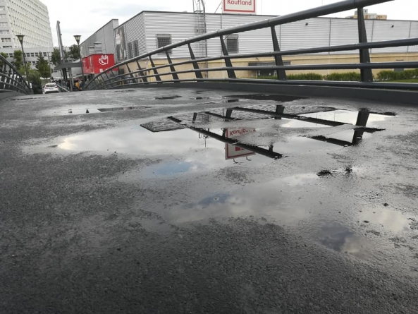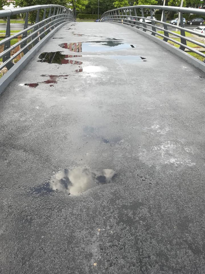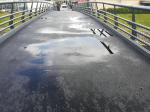 Pasarela a fost reabilitată, paradoxal am putea spune „în grabă” (închisă întâi în 2018, apoi peticită, din nou închisă în 2019 și lăsată închisă timp de un an până în iunie 2020), întrucât, aparent, unele chestiuni au rămas de reabilitat. Oamenii reclamă că ar mai fi unele neajunsuri.