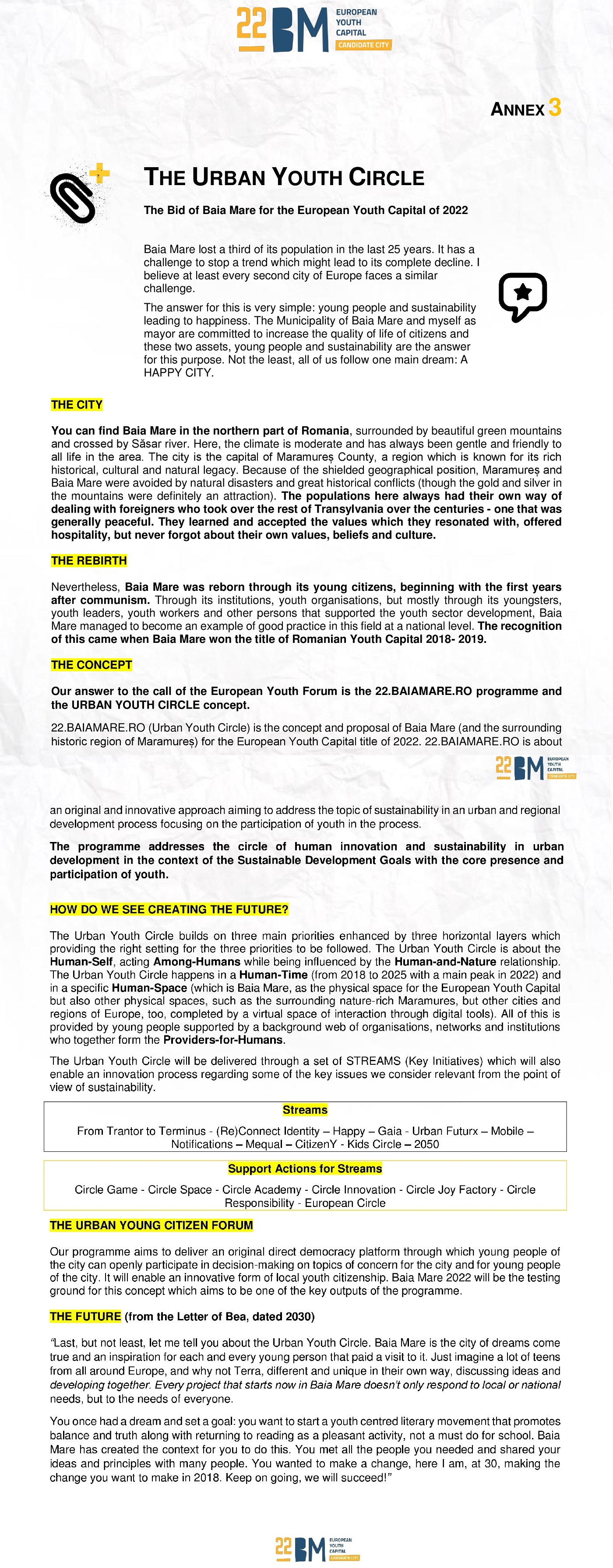 Proiectul de hotărâre privind aprobarea angajamentului de susținere pentru candidatura Municipiului Baia Mare pentru titlul de ”Capitală Europeană de Tineret, ediția 2022” prevedea în cazul obținerii acestui titlu alocarea sumei de 6.000.000 de euro (în rate anuale). Proiectul a obținut aviz nefavorabil de la Comisia II pentru amenajarea teritoriului şi urbanism, protecţia mediului şi turism), chestiune care a dat naștere la întrebări.