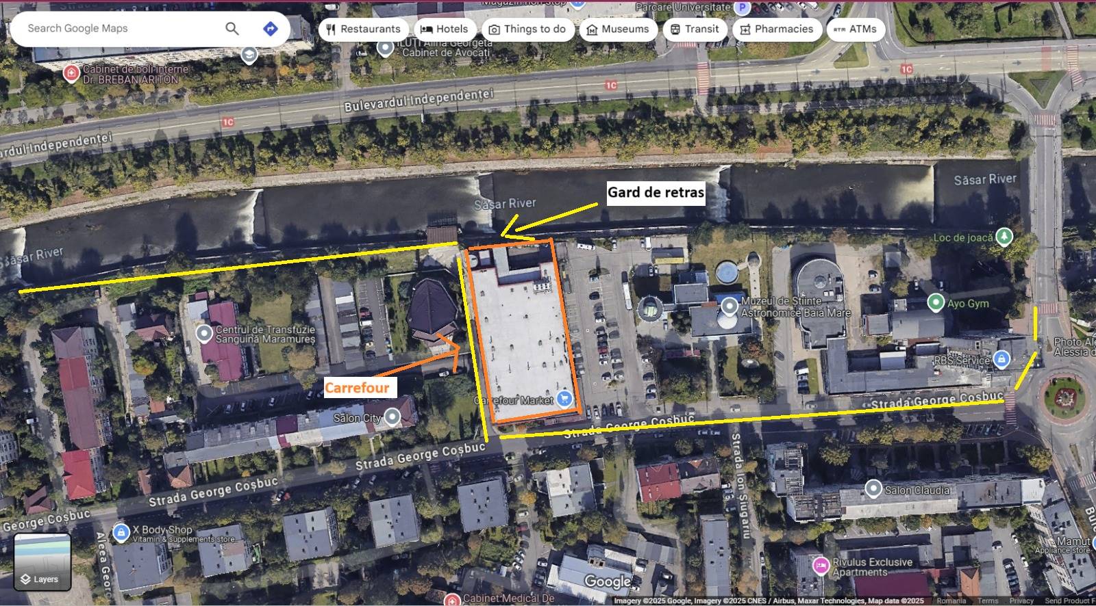 Pentru a evita această soluție nedorită, Asociația Maramureș Bike a inițiat un dialog cu reprezentanții Carrefour România, propunând restrângerea zonei de aprovizionare a magazinului cu aproximativ 3–4 metri.