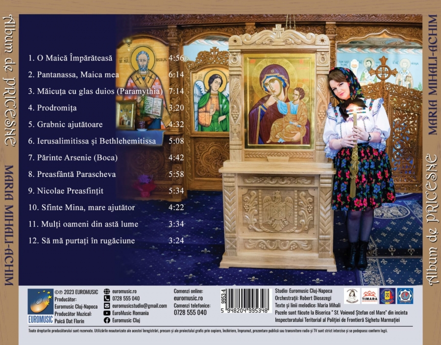 Îndrăgita artistă Maria Mihali-Achim din Borșa anunță că a pregătit un frumos album, acesta conținând 12 pricesne. Toate sunt foarte frumoase și cu siguranță vor ajunge la sufletele celor care le vor asculta.