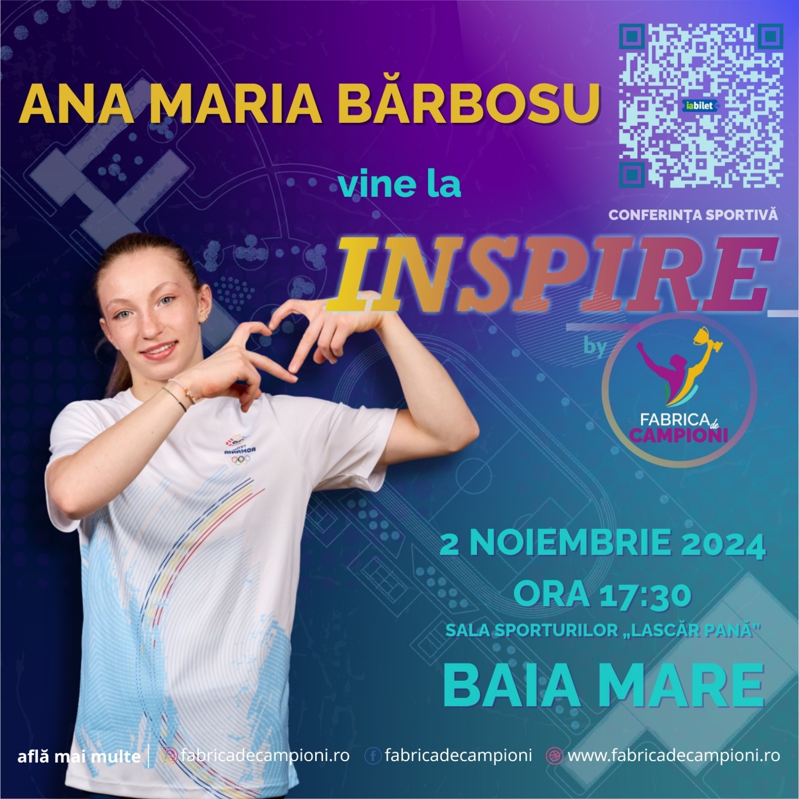 A doua ediție a conferinței sportive „Inspire” by Fabrica de Campioni o aduce în fața publicului băimărean pe Ana Maria Bărbosu. Gimnasta vine la Baia Mare pe 2 noiembrie.