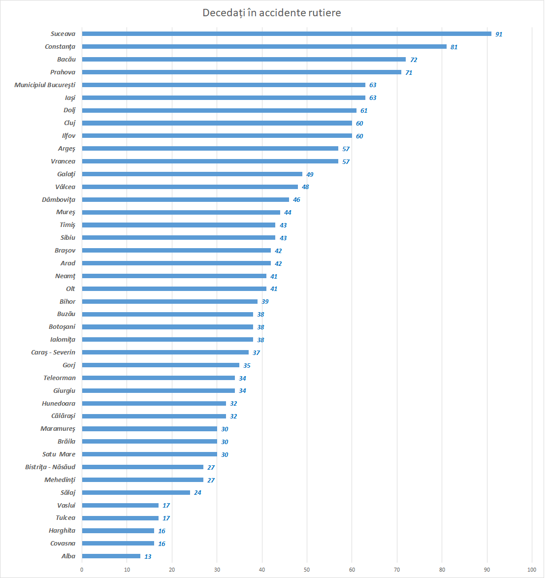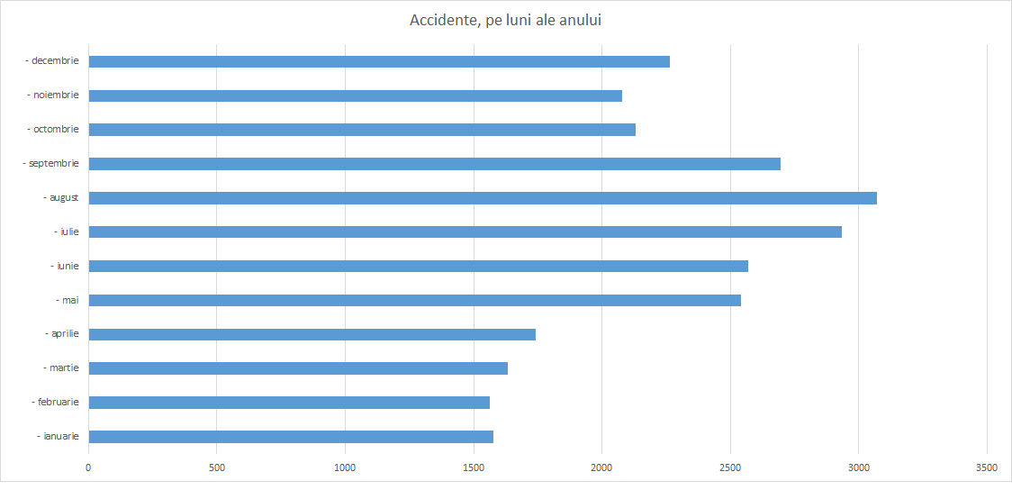 Din păcate, România e campioana accidentelor cu victime în UE, urmată la mică distanță de Bulgaria. Pe scurt, la noi mor cei mai mulți oameni ca urmare a accidentelor. Până și italienii, cunoscuți pentru dezordinea din trafic, stau incomparabil mai bine. Graficul de mai jos are la bază datele Organizației Mondiale a Sănătății. Iulie și august sunt lunile în care au loc cele mai multe accidente cauzatoare de vătămări corporale. În februarie, cele mai puține. Dacă ne uităm la date, raportându-le la județe, Capitala este locul cel mai periculos pentru șofat. E drept, aici sunt și cele mai multe mașini. dar ca număr de decedați ca urmare a accidentelor rutiere, Suceava și Constanța sunt pe primele locuri, urmate de Bacău. Din totalul persoanelor accidentate anul trecut, cele mai multe aveau peste 30 de ani. De remarcat de asemenea că numărul victimelor sub 20 de ani este mai ridicat decât al celor din categoria de vârstă 20-29 de ani. Sub 10% din accidente au avut loc sub influența alcoolului, potrivit datelor oficiale, iar dintre acestea, numărul șoferilor care au consumat alcool la volan și au produs un accident este egal cu numărul pietonilor și bicicliștilor beți, mai arată sursa citată în acest articol.