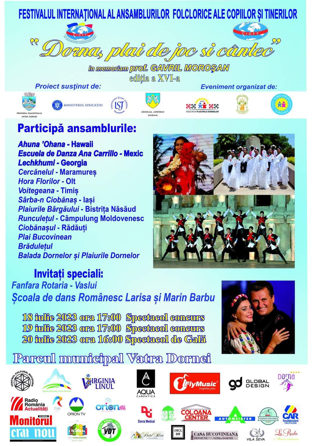 Timp de trei zile, în 18, 19, 20 iulie 2023, pe scenă vor urca ansambluri folclorice din toată țara, dar și din străinătate, din țări precum Statele Unite ale Americii, Mexic sau Georgia.