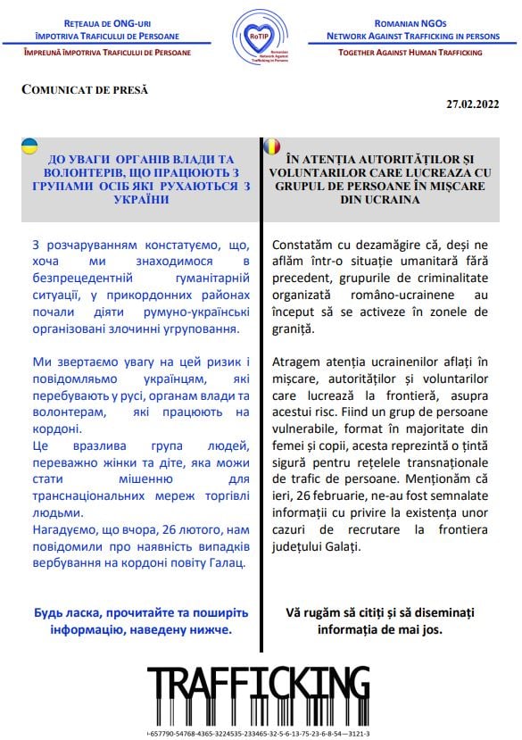 Fie apar samsarii care percep bani refugiaților pentru transport dintr-o parte în alta a țării percepându-le mulți bani, fie apar indivizi implicați în activități asociate crimei organizate. Tocmai de aceea este nevoie de multă atenție la frontieră, cu precădere din partea celor care coordonează activitățile de triere și relocare a persoanelor care au alergat din calea armelor care devastează Ucraina. S-au tras deja semnale în acest sens.
