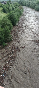 Ape mari: În Maramureș, furtunile au generat scurgeri de pe versanți care au antrenat cantități mari de material lemnos plus deșeuri (FOTO)