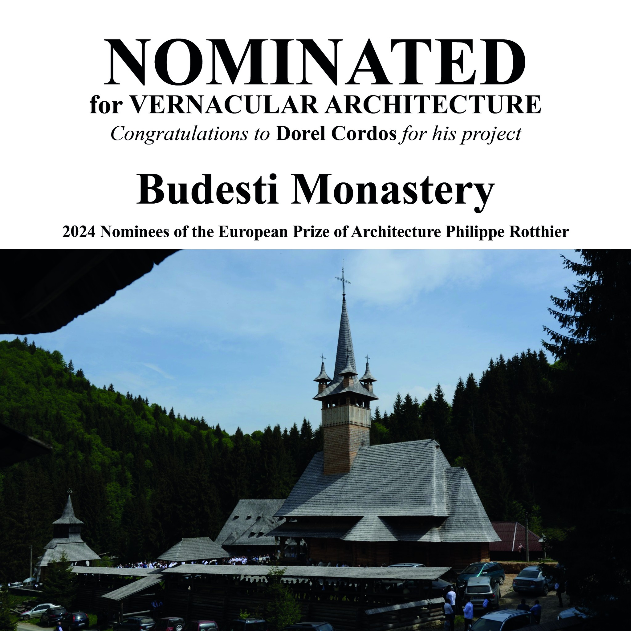 Nominalizarea arhitectului sighetean Dorel Cordoș s-a făcut pentru una dintre lucrările de referință care poartă semnătura sa: „Mănăstirea Budești”.
