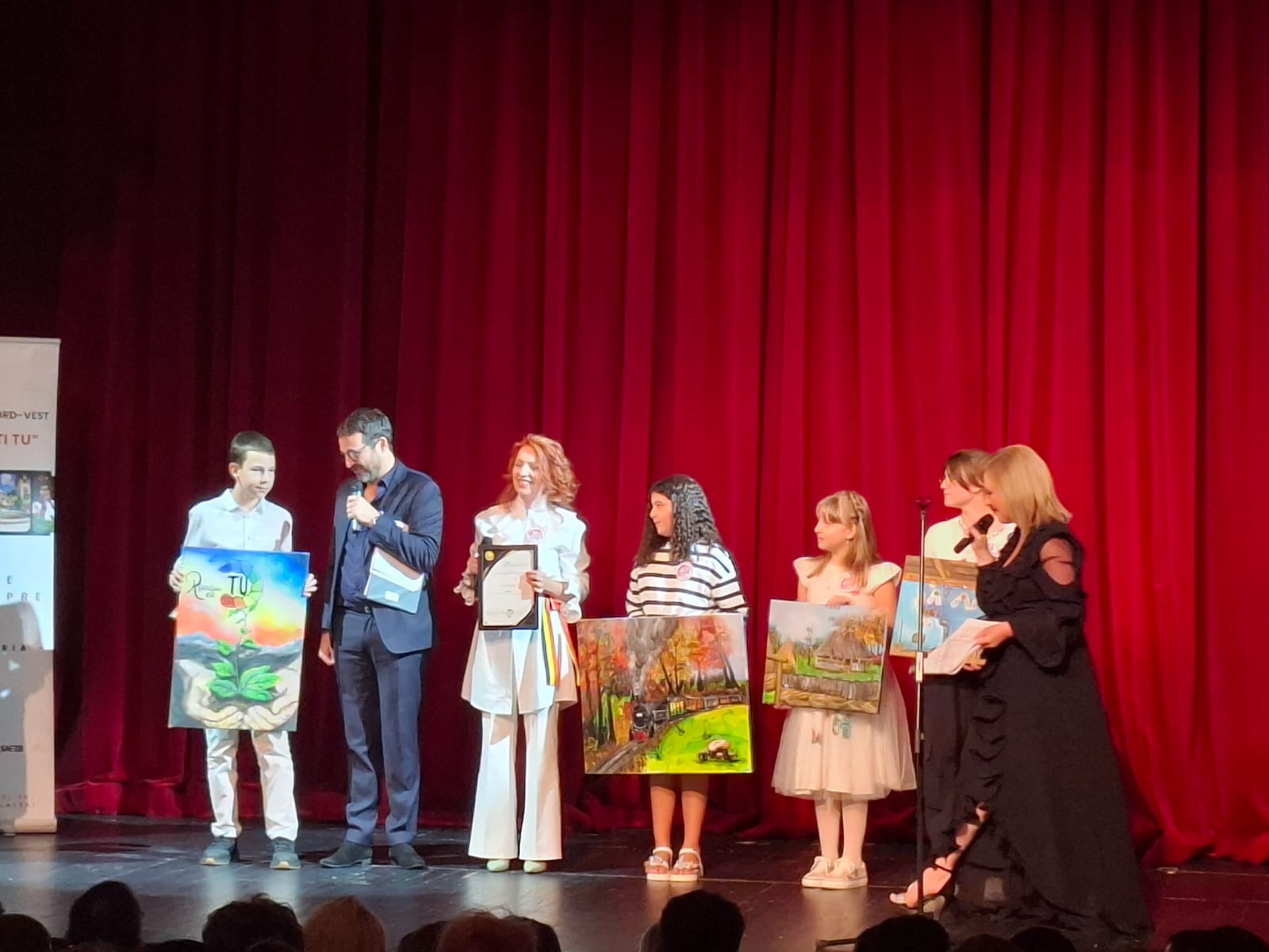 Artista Irina Doce și copii de la Cercul de pictură din Borșa, la Gala „România ești tu!”