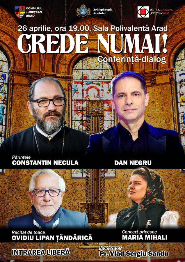 În 26 aprilie, Sala Polivalentă Arad va găzdui conferința-dialog „Crede numai!”.