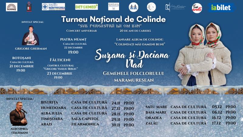 În preajma sărbătorilor de iarnă, gemenele folclorului maramureșean – Suzana și Daciana Vlad – vor porni într-un turneu extraordinar de colinde în 12 orașe ale țării. Acesta se intitulează „Sub fereastră la om bun”.