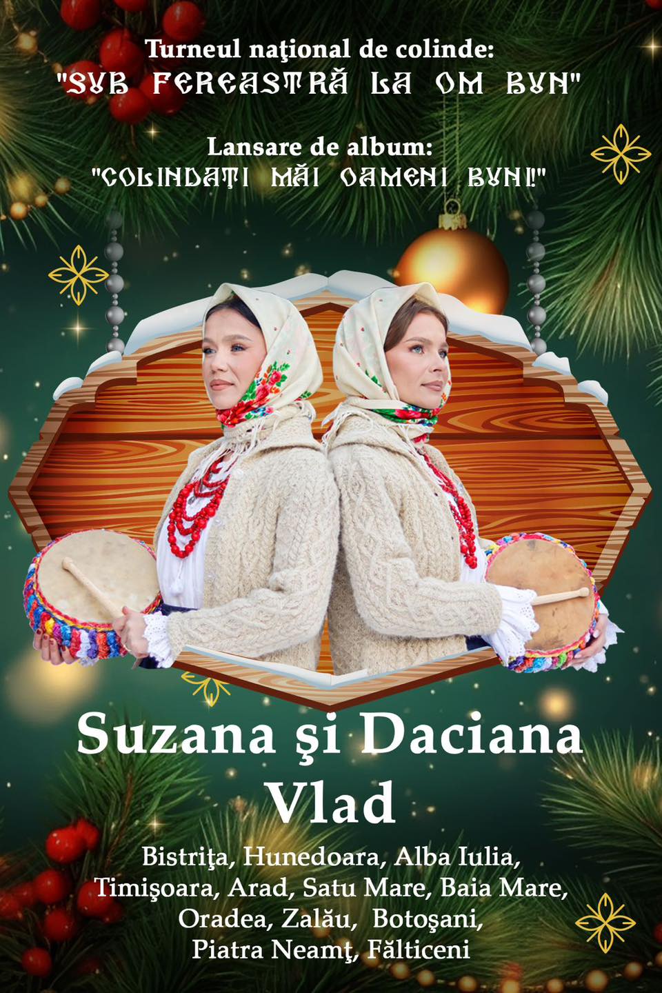 În preajma sărbătorilor de iarnă, gemenele folclorului maramureșean – Suzana și Daciana Vlad – vor porni într-un turneu extraordinar de colinde în 12 orașe ale țării. Acesta se intitulează „Sub fereastră la om bun”.