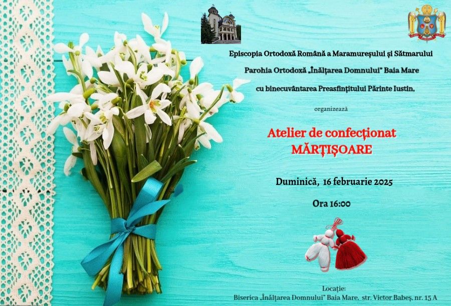 Cu binecuvântarea arhierească a Preasfințitului Părintelui Iustin, Episcopul Maramureșului și Sătmarului, Parohia „Înălțarea Domnului” din Baia Mare organizează duminică, 16 februarie, un „Atelier de confecționat mărțișoare”.