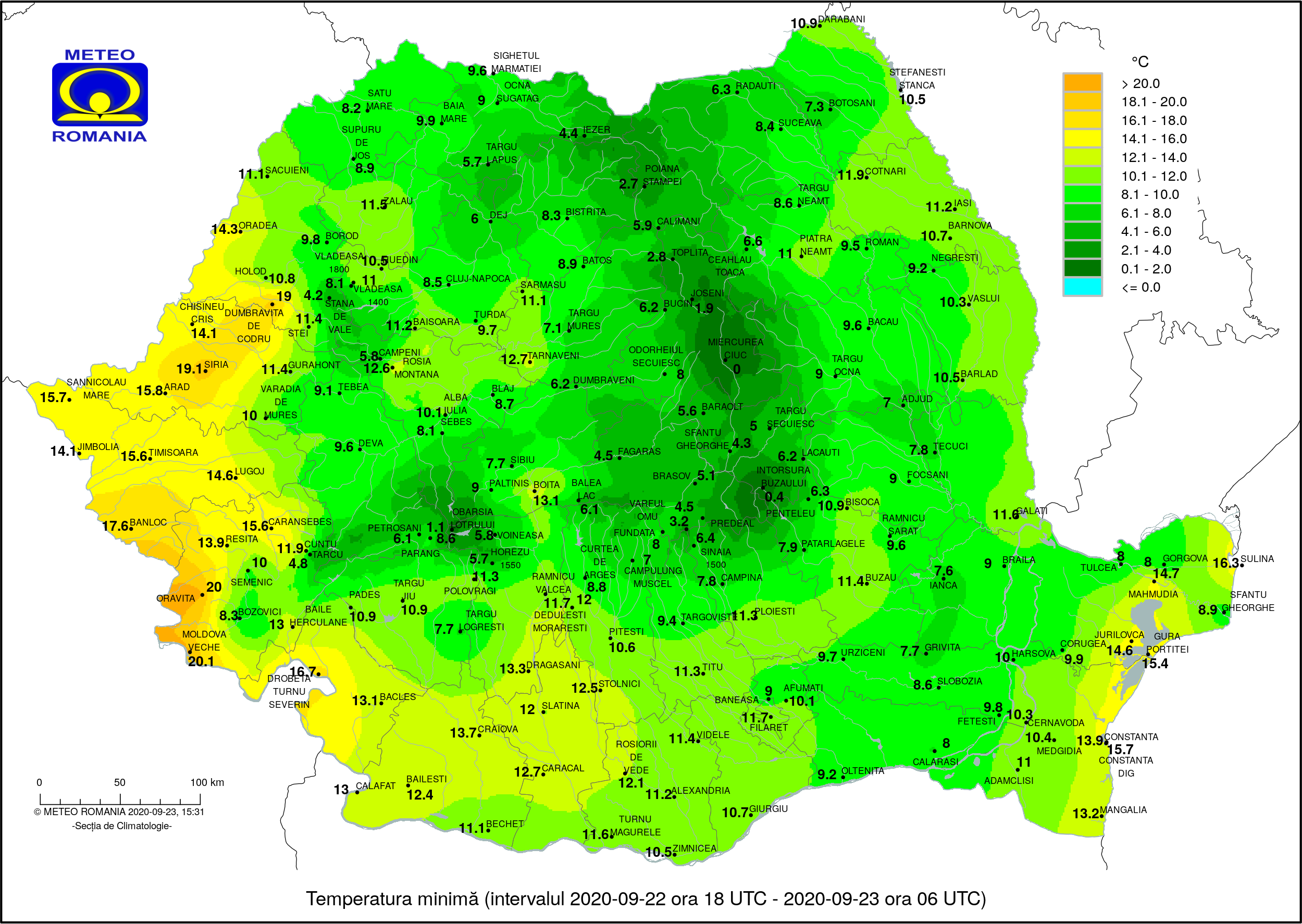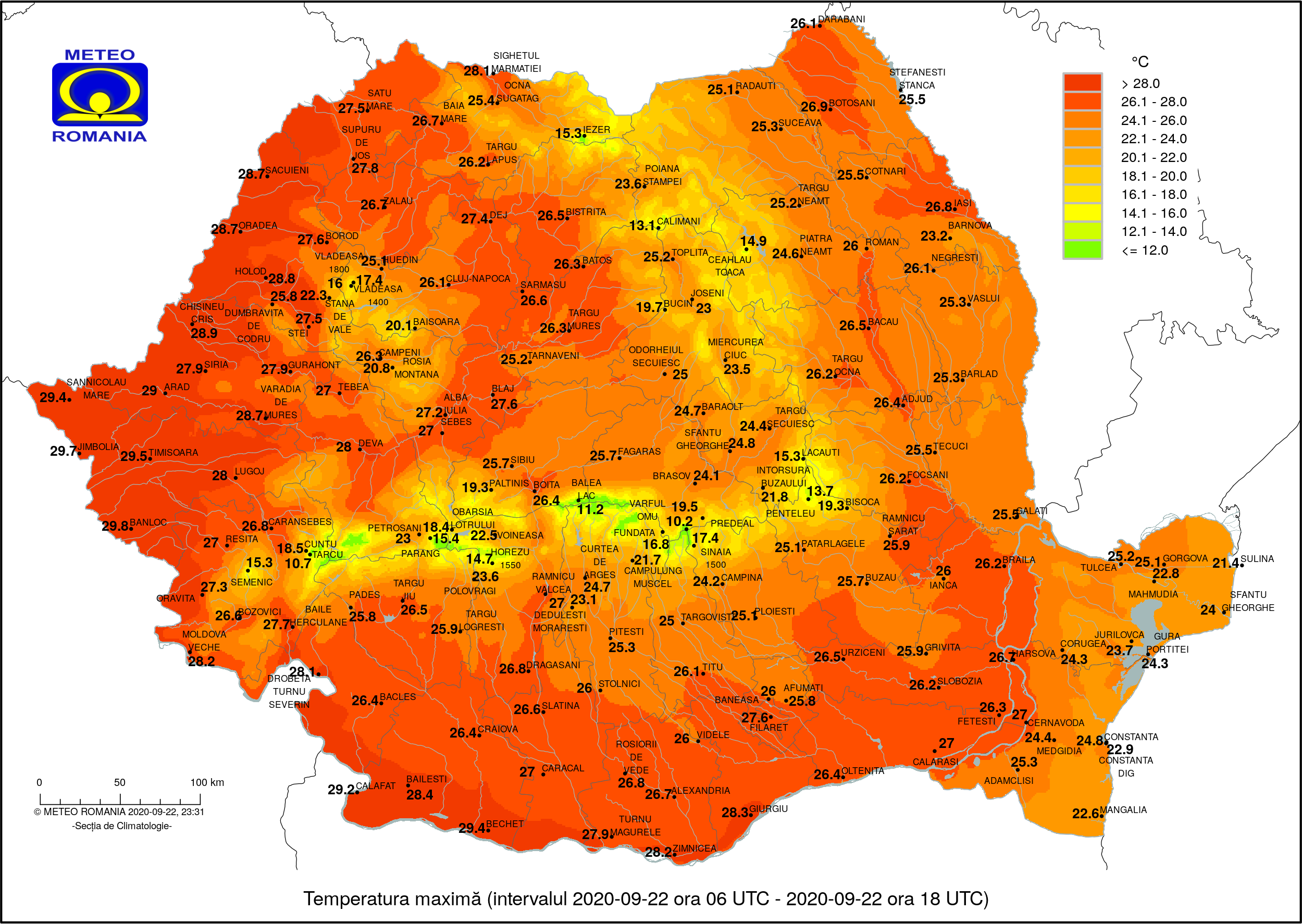 Spre exemplu, în data de 22 septembrie (similară termic și ca și caracteristici cu 7 mai, în mod normal), s-au înregistrat medii ale valorilor termice maxime de 27 grade. Cerul a fost mai mult senin în regiunea noastră, caracterizând o vreme minunată de început de toamnă.