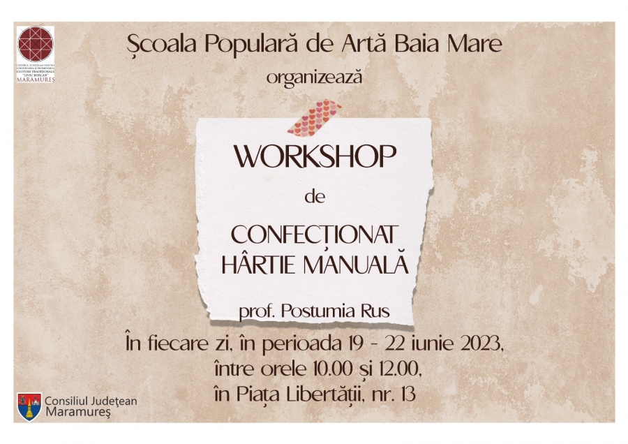 Persoanele peste 12 ani sunt invitate să se înscrie la atelierul de confecționat hârtie manuală, acesta fiind organizat de prof. Postumia Rus.