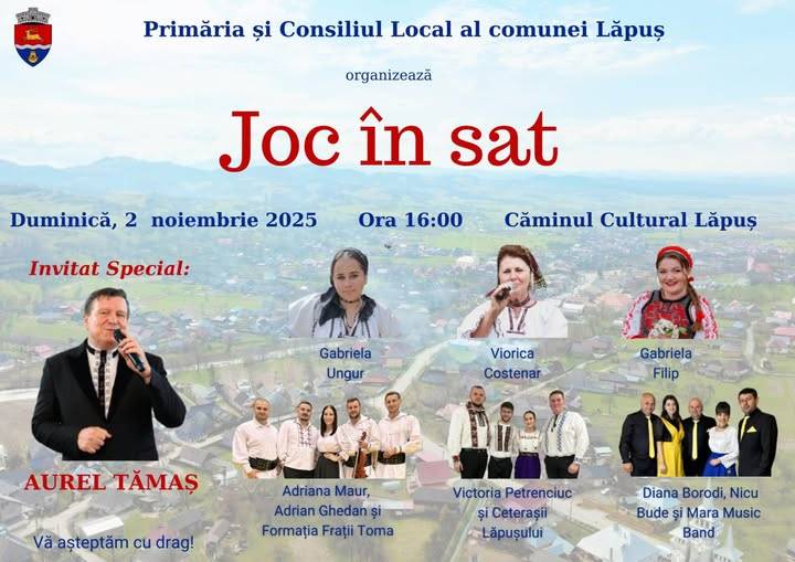 „Haideți, dragi lăpușeni, duminică – 2 noiembrie, de la ora 16:00, la Căminul Cultural! Să jucăm, să cântăm și să ne bucurăm de tot ce avem mai frumos: tradiția, portul și prietenia. Vă așteptăm în număr cât mai mare, la o adevărată sărbătoare a sufletului maramureșean!” Cristina Buda – primar.