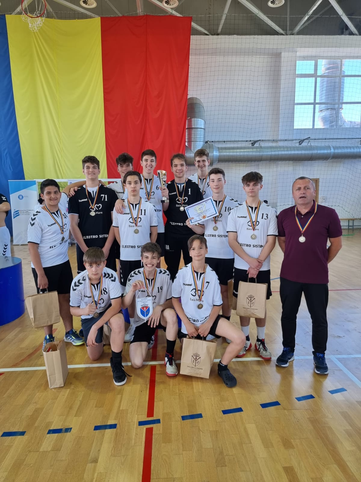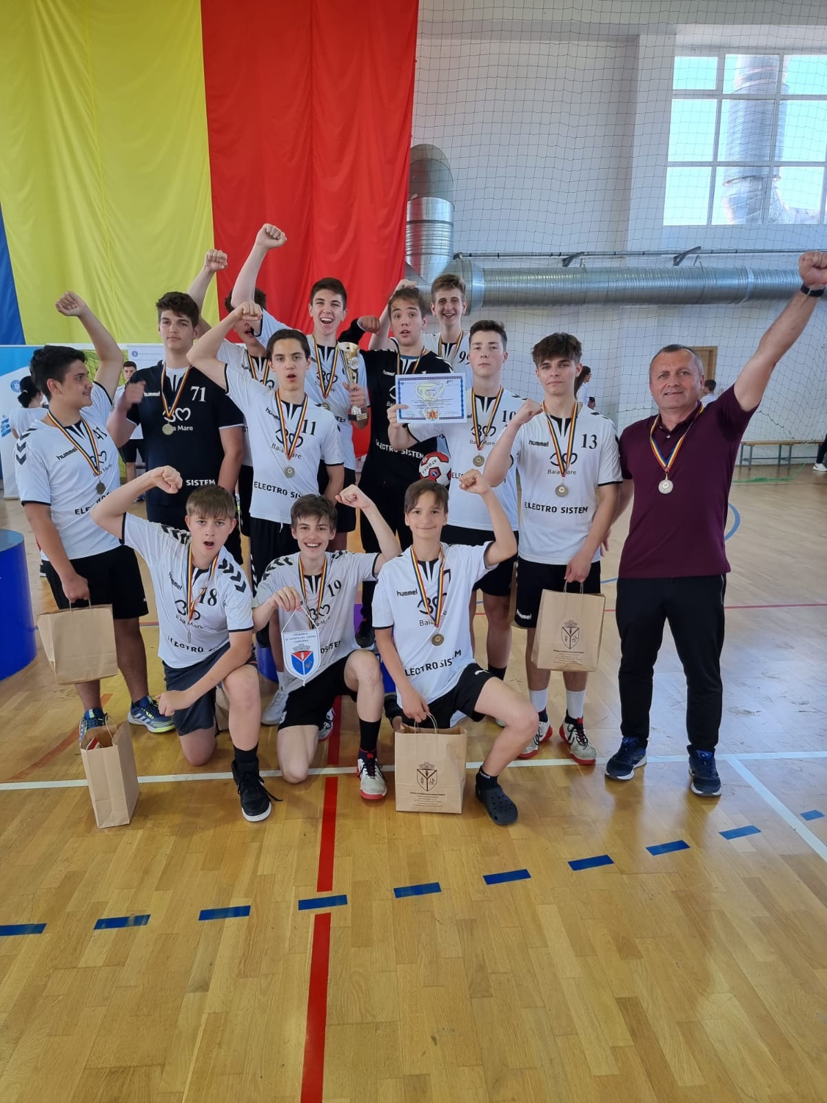„Bronz național pentru handbaliștii de la ,,N. Iorga”! Echipa de handbal băieți a Școlii Gimnaziale ,,N. Iorga” Baia Mare a obținut locul III și medalia de bronz, la faza finală a Olimpiadei Naționale a Sportului Școlar, ediția 2021-2022. Competiția a fost organizată de ISJ Constanța, în localitatea Cumpăna, în perioada 19-22 mai 2022. Echipa care a obținut această performanță: Barbul Sebastian, Benea Rareș, Reval David, Meleg Norbert, Graur Mario, Iștovan Luca, Sarca Tudor, Bodolay Robert, Fodor Adam, Mureșan Luca, Mureșan Paul, Maxim Raul, prof. Sechel Dumitru”, arată prof. Dumitru Sechel.