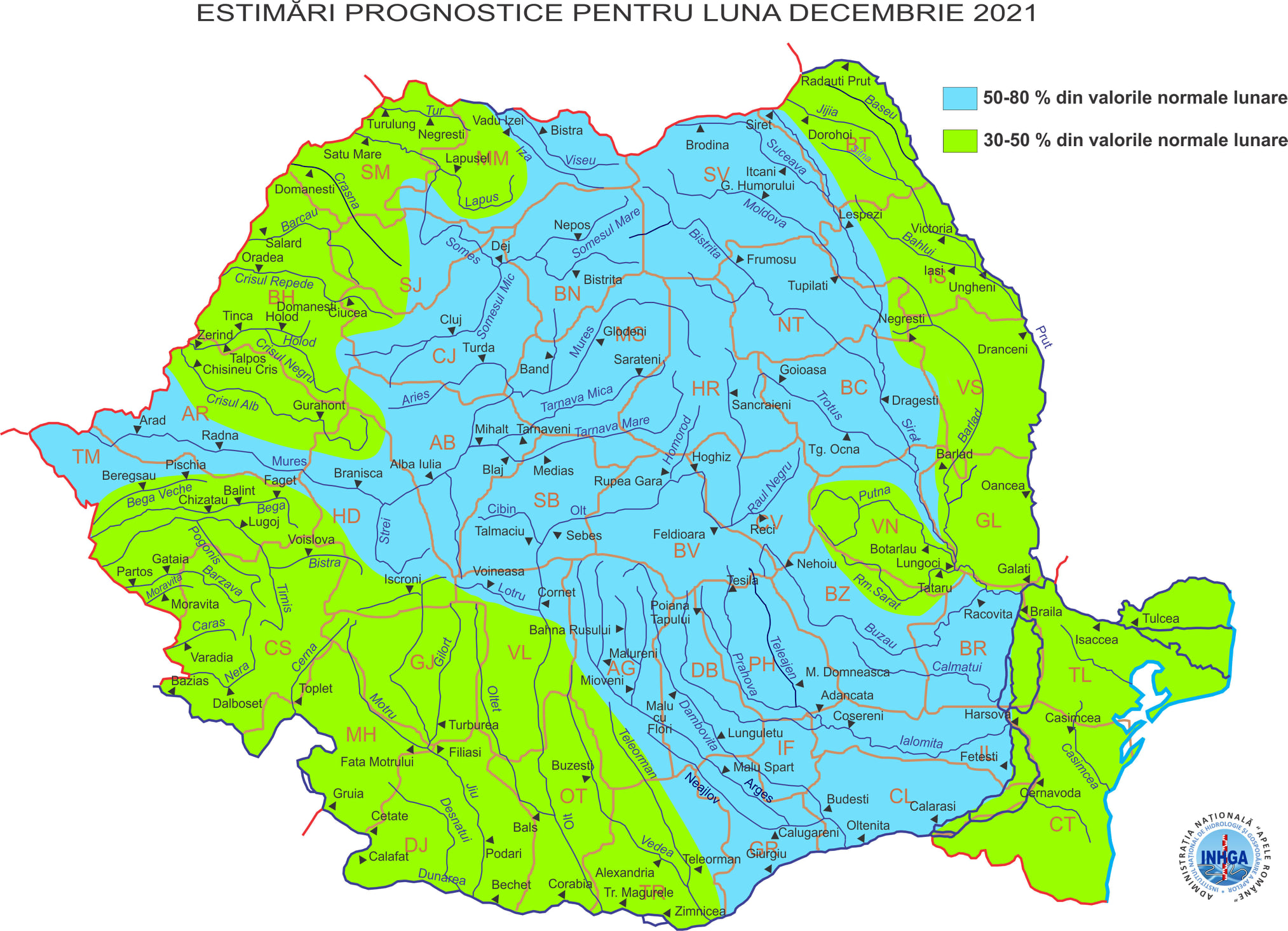 Iată prognoza pentru luna decembrie realizată de reprezentanții și totodată speciaștii Institutului Național de Hidrologie și Gospodărire a Apelor și preluată de Administrația Bazinală de Apă Someș-Tisa.