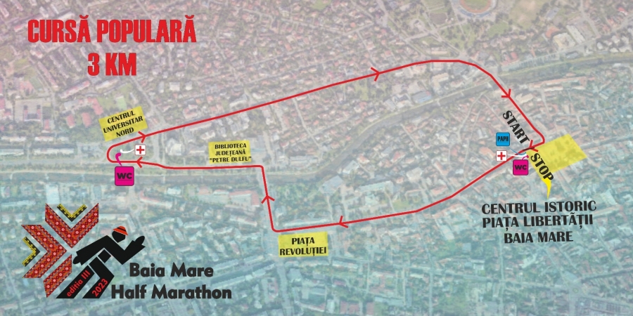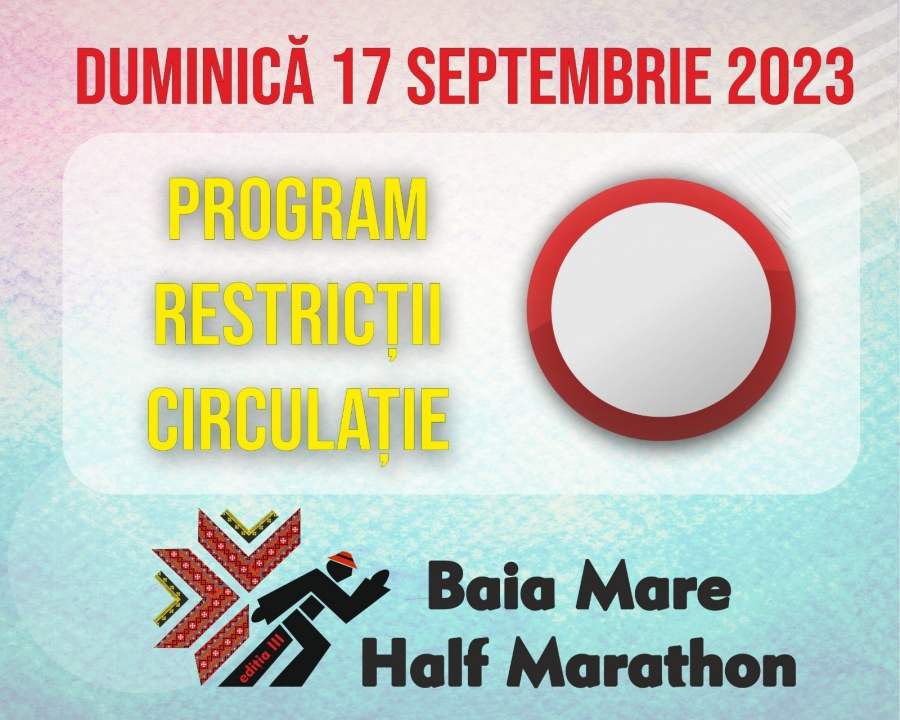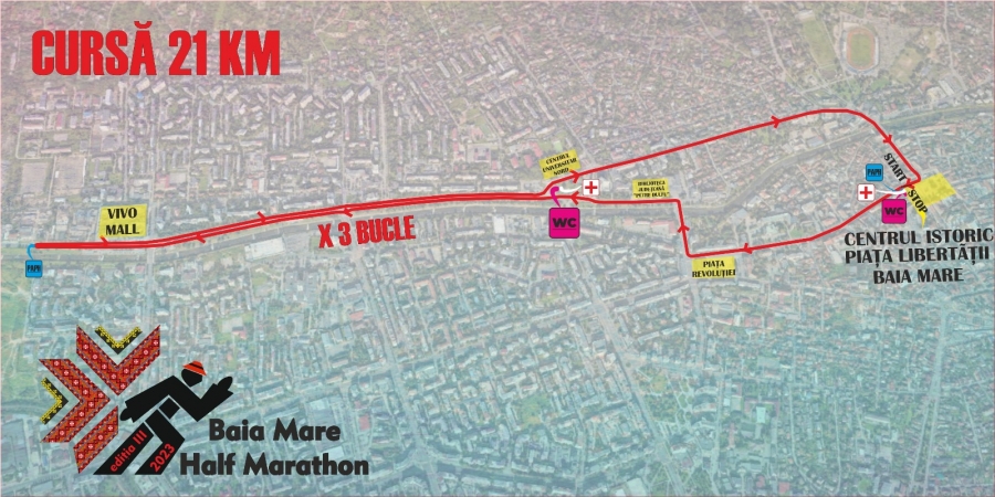 Viilor cu FINISH în zona de Start; - Închiderea și securizarea în intervalul orar 8:00 – 13:00 a traseelor de concurs: START Piața Libertății (de la str. Podul Viilor până la magazine Central) – Str. Gh. Șincai, Culturii (zona liceu V. Lucaciu) – Podul Culturii – bd. Independenței prin fața Bibliotecii Județene – bd. Independenței până în zona Transgold (spălătorie auto) – retur pe Bd. Independenței până la Universitate – str. Victoriei – Podul Viilor – Piața Libertății cu FINISH în zona de Start.