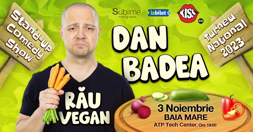 „Dacă nutriționiștii ar fi comedianți, cu siguranță l-ai alege pe Dan Badea. De ce? Pentru că a pregătit un material nou, 100% organic, fără zahăr adăugat, dar cu mult umor și glume (rău) vegane. Vino cu toți prietenii tăi (vegani sau gurmanzi) la un show savuros, cu specific românesc, la care să râzi cu multă poftă. PS: Pentru un stil de viață sănătos se prescrie comedie, iar tu trebuie doar sa iti cumperi biletul”, arată organizatorii. Bilete se găsesc AICI!