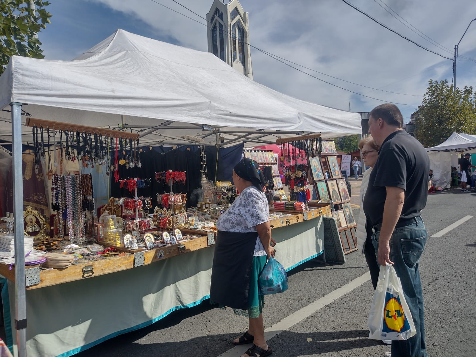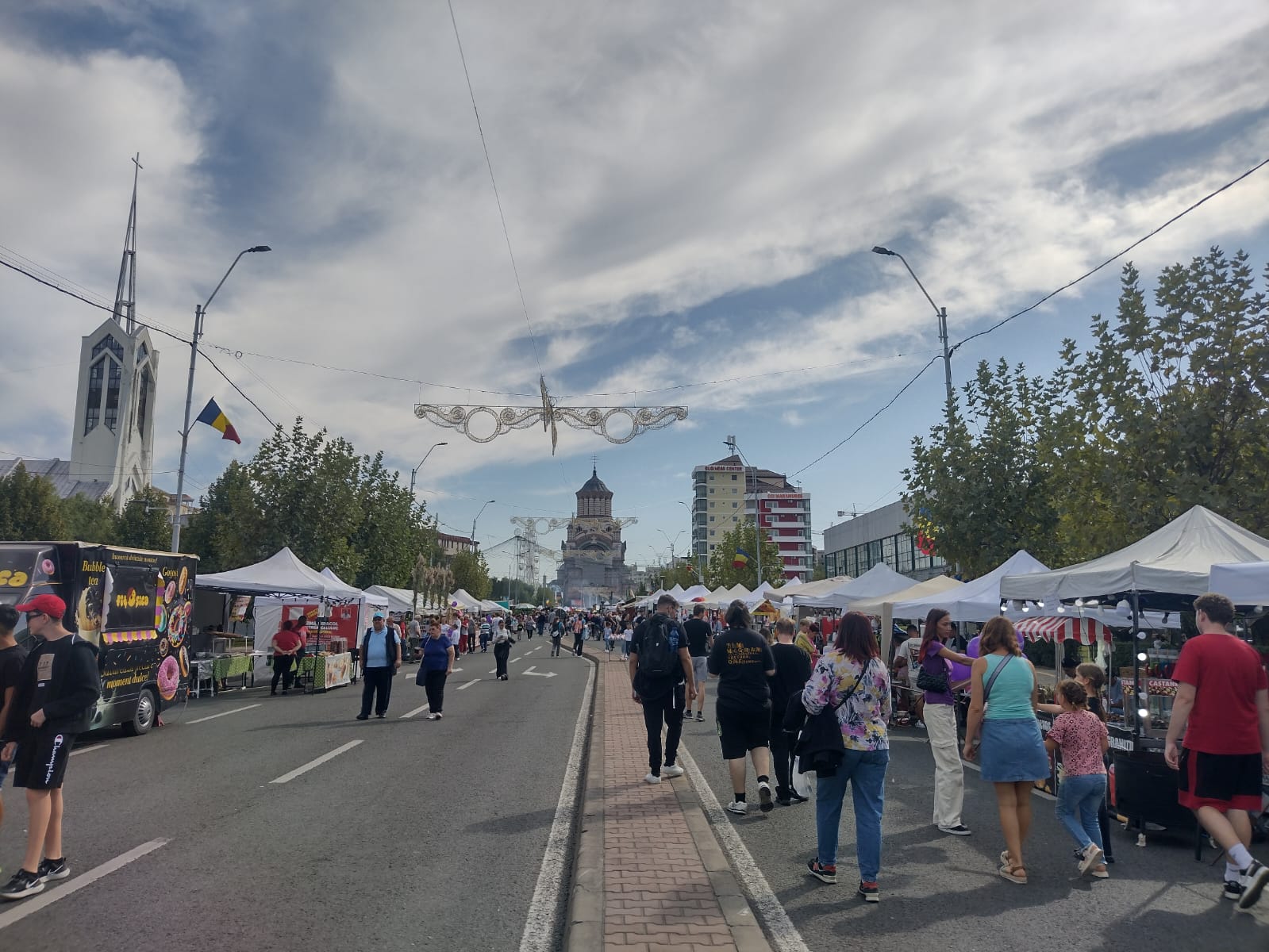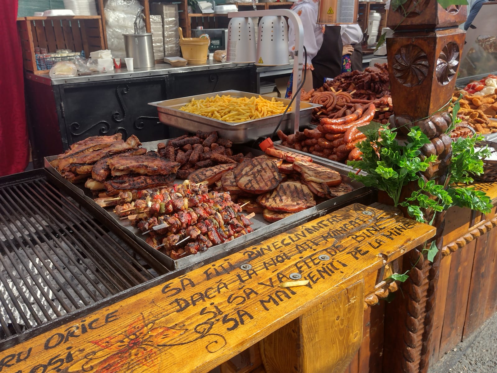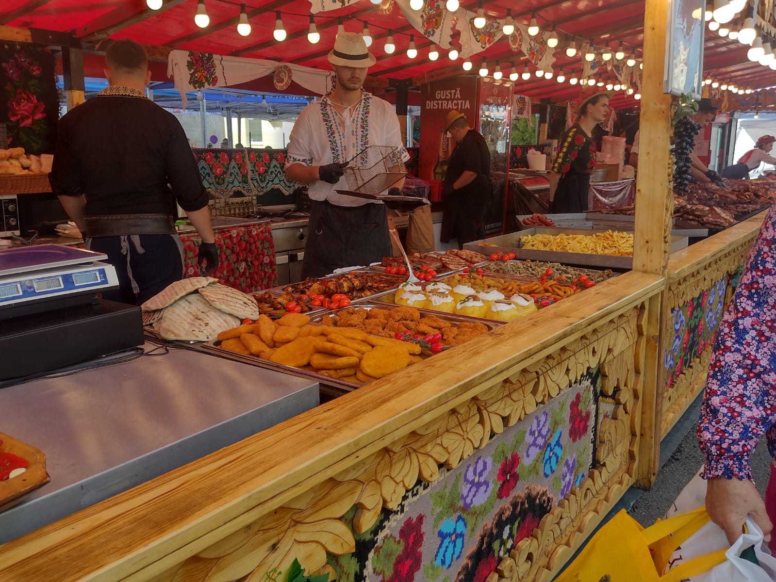După paradă, mulți dintre cetățeni au luat calea standurilor de pe bd. Unirii, unde au descoperit o ofertă variată de produse alimentare. De exemplu, o porție de castane prăjite se poate cumpăra cu 15 lei/suta de grame, un mic cu 7 lei, kürtőskalács – 30 lei, porumb – 10 lei. S-a stat la coadă și la langoși, clătite, frigărui etc.