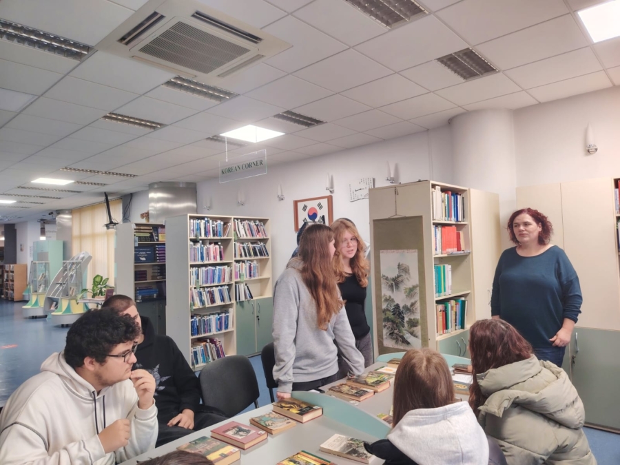 Participanților le-au fost prezentate, în continuarea activității, compartimentele destinate publicului, serviciile oferite utilizatorilor bibliotecii, expozițiile și vitrinele de carte. Bibliotecarele au pregătit o expoziție de carte cu volume din literatura română, care abordează tema literară „FAMILIA”.