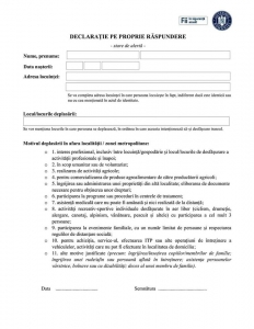 Noul model de declarație valabil pe durata stării de alertă este cel de mai jos!