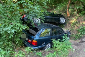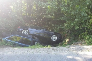 BMW-uri în inedite ipostaze: Tânăr din Maramureș, accident spectaculos în Cluj. Șofer implicat într-o liniuță, ajuns cu mașina în șanț după alt vehicul! (FOTO)