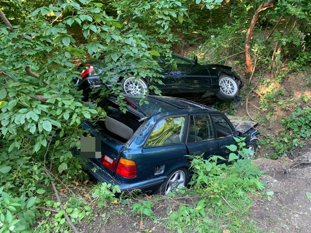 BMW-uri în inedite ipostaze: Tânăr din Maramureș, accident spectaculos în Cluj. Șofer implicat într-o liniuță, ajuns cu mașina în șanț după alt vehicul! (FOTO)