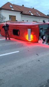 Ca și când nu ar fi fost de ajuns: Autospecială ISU, plină cu maramureșeni, răsturnată în Cluj. Făcea parte din coloana cu cei întorși din Paris (FOTO)