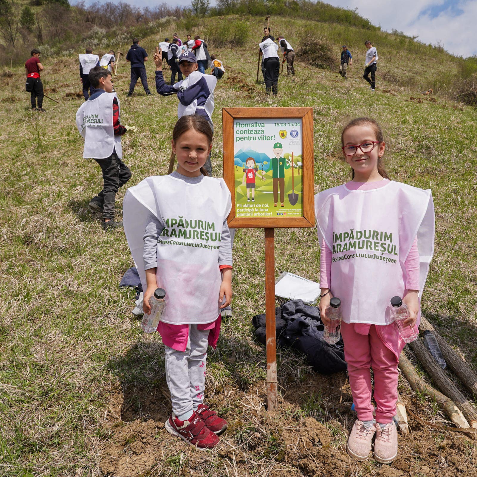 Reprezentanți ai Consiliului Județean Maramureș, ai Inspectoratului Școlar Județean, ai Direcției Silvice Maramureș împreună cu elevi și profesori de la Școala Gimnazială ”Liviu Rebreanu” Dragomirești au plantat aproximativ 12 000 de puieți de gorun pe o suprafață de 3 hectare.