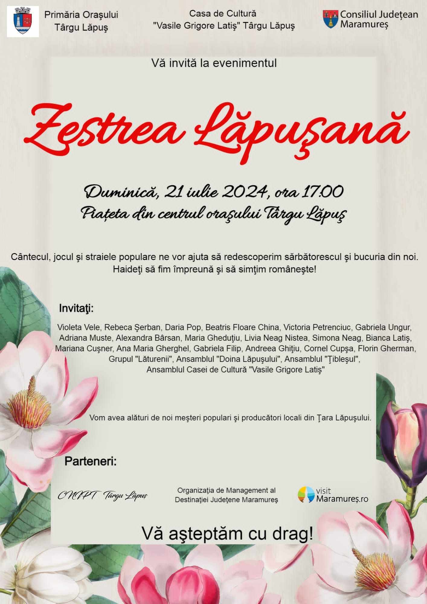 În 21 iulie, de la ora 17.00, în piațeta din centrul orașului Târgu Lăpuș se va desfășura o nouă ediție a evenimentul „Zestrea Lăpușană”.