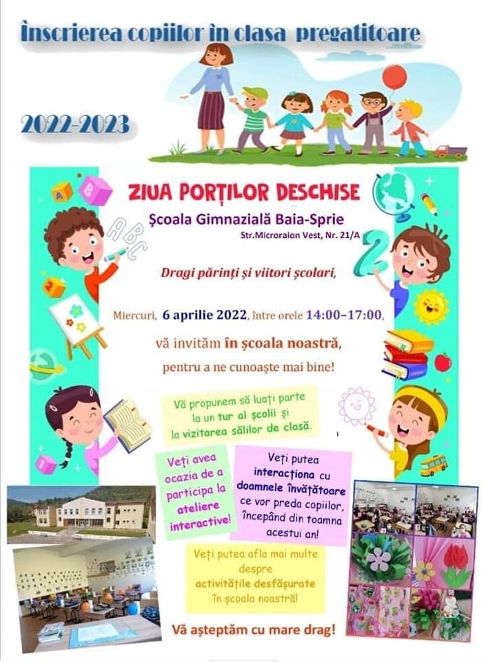 Care este oferta educațională: Util pentru copii și părinții lor! Are loc Ziua Porților Deschise, la unitățile de învățământ din orașul Baia-Sprie!