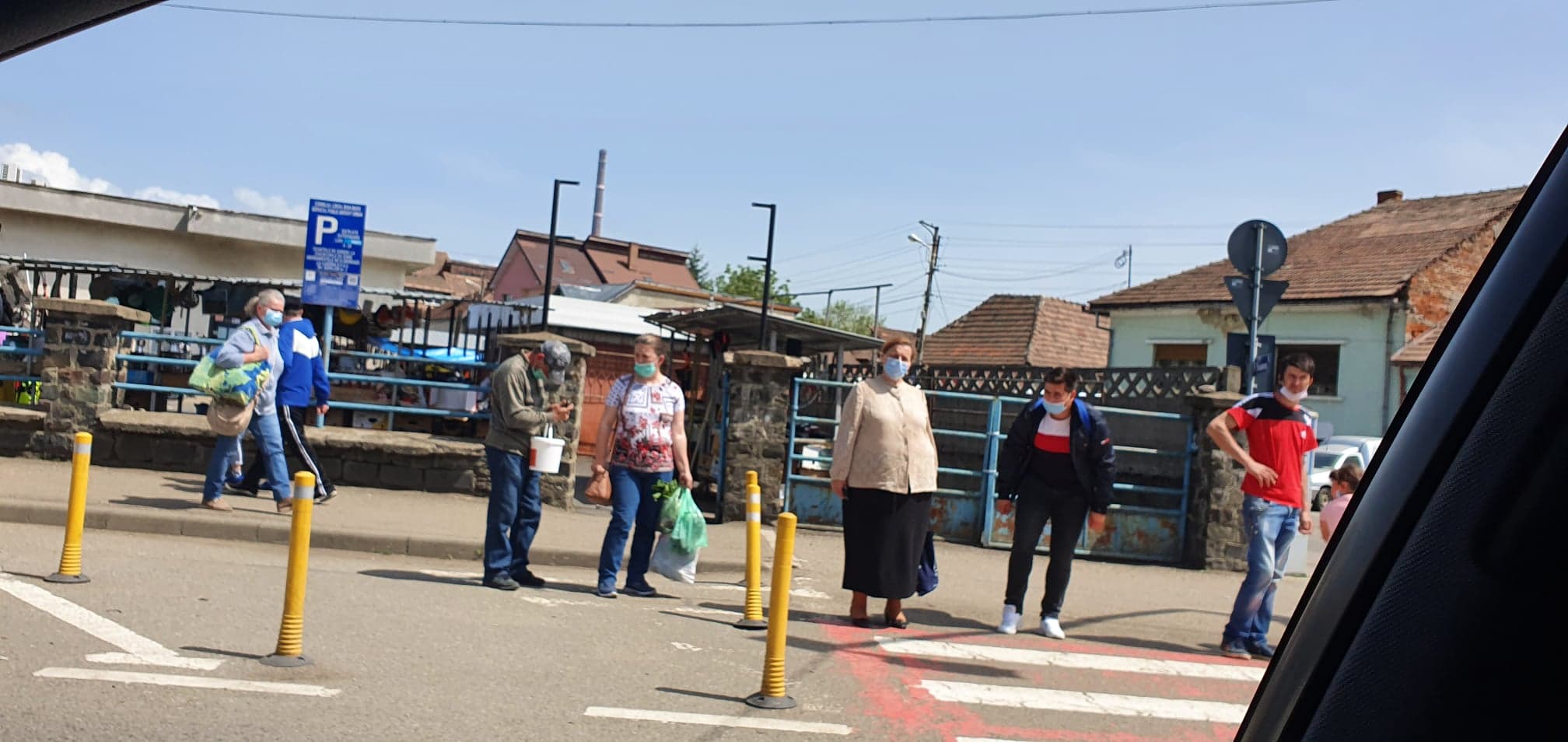 Zona Maramureșul – Mara, centrul orașului. Oamenii au ieșit din case, profitând de eliminarea primului set de măsuri restrictive. Distanța socială de 1,5 metri între cetățeni s-a redus la câțiva centimetri. Mulți nici măcar nu își protejau fața cu mască de protecție sau cu orice altceva. Unii dintre ei stau la taclale unii lângă ceilalți, iar grupurile de maximum 3 persoane s-au multiplicat cu 3. Mulți stau la coadă la bancomate, doar e zi de salariu. Piața Izvoarele. Mulți vârstnici au luat cu asalt spațiul pentru a-și face aprovizionarea cu legume, fructe, lactate, etc. Cum nu s-au văzut demult, se opresc în mijlocul drumului, unde stau la discuții. Cât despre măști, în cazul unora lipsesc cu desăvârșire. În piață forfota este atât de mare, exact ca-n vremurile de dinainte de COVID-19.