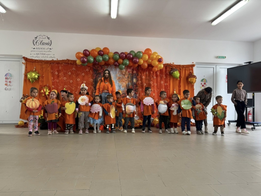În cadrul serbării, cei mici au susținut, cu multă emoție, momente artistice, recitând poezii și cântând melodii tematice de toamnă. Pentru implicarea și curajul lor, fiecare copil a primit o diplomă de participare, în semn de apreciere pentru munca și entuziasmul depuse. La final, copiii, părinții și educatoarele au lucrat împreună într-un atelier de creație, pictând dovleci și obiecte din ipsos care au făcut ca atmosfera de toamnă să fie mult mai prezentă.