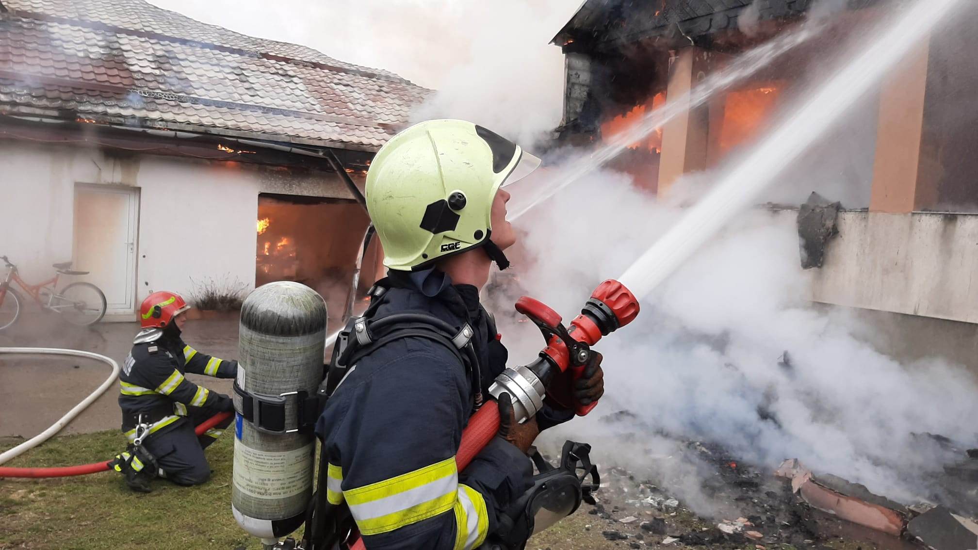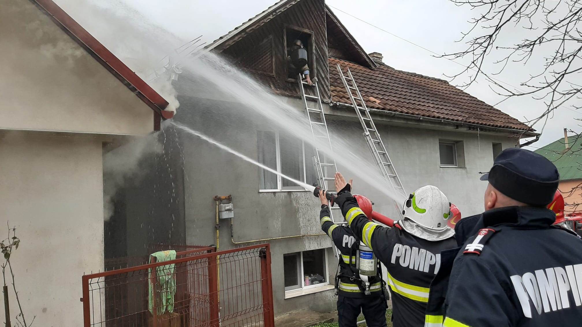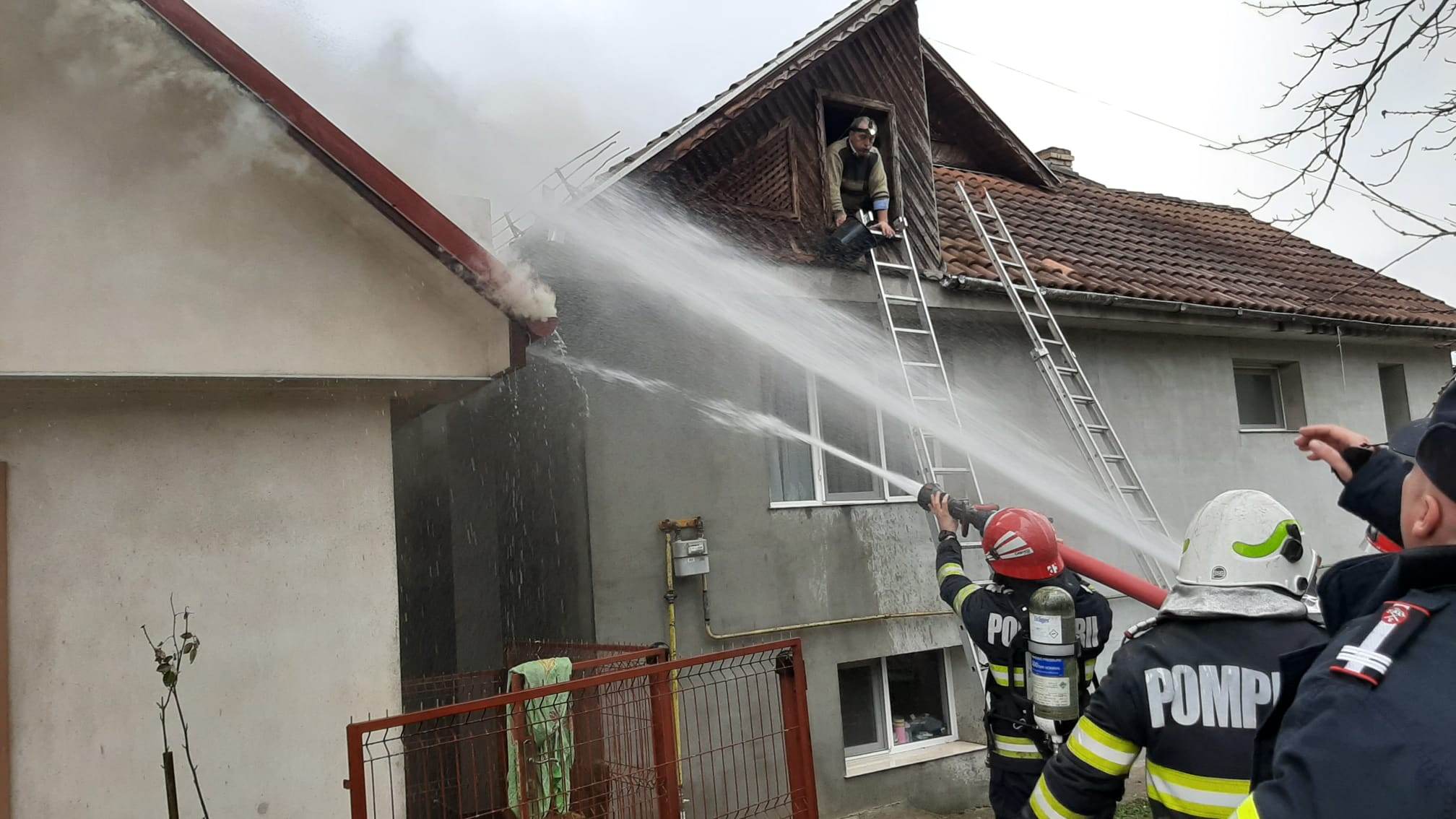 Flăcările de la anexa gospodărească s-au extins către casa din apropiere. La fața locului s-au deplasat pompierii.