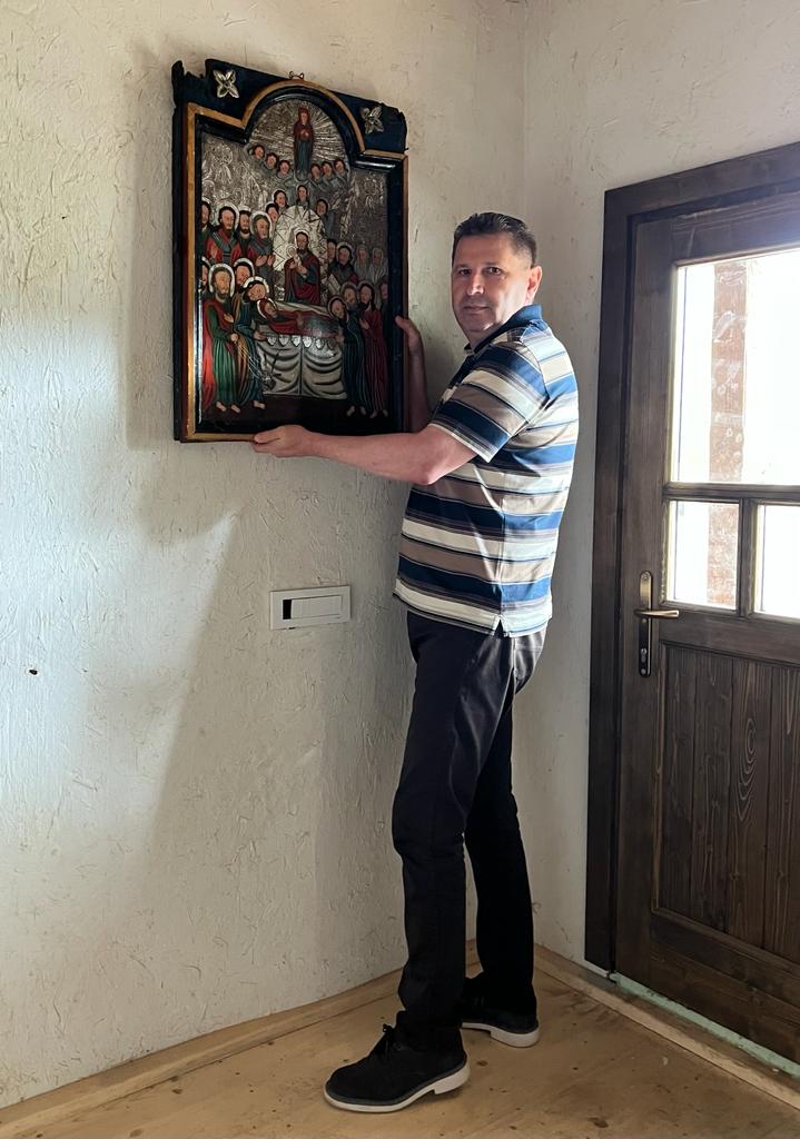 „Prin intermediul unui prieten apropiat, specialist în domeniu, am achiziționat pe cheltuiala mea, o icoană împărătească, pictată pe lemn (ambele fețe), din secolul al XVIII-lea (Școala Transilvăneană), reprezentând ,,Adormirea Maicii Domnului” și ,,Intrarea în Biserică a Maicii Domnului”. Icoana va străjui intrarea în casa de lemn veche de 120 de ani, restaurată în parcul din fața Primăriei Giulești aflat într-un amplu proces de modernizare – istoric și etnografic, de lângă statuia eroului Ilie Lazăr”, arată primarul Laurențiu Batin.