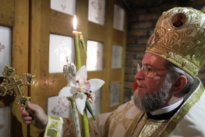 Sâmbătă, 27 aprilie, la ora 24,00, Preasfinţitul Părinte Iustin, Episcopul Maramureşului şi Sătmarului, a oficiat, la Catedrala Episcopală „Sfânta Treime” din Baia Mare, slujba Învierii Domnului, urmată de Sfânta Liturghie solemnă din ziua de Paşti.