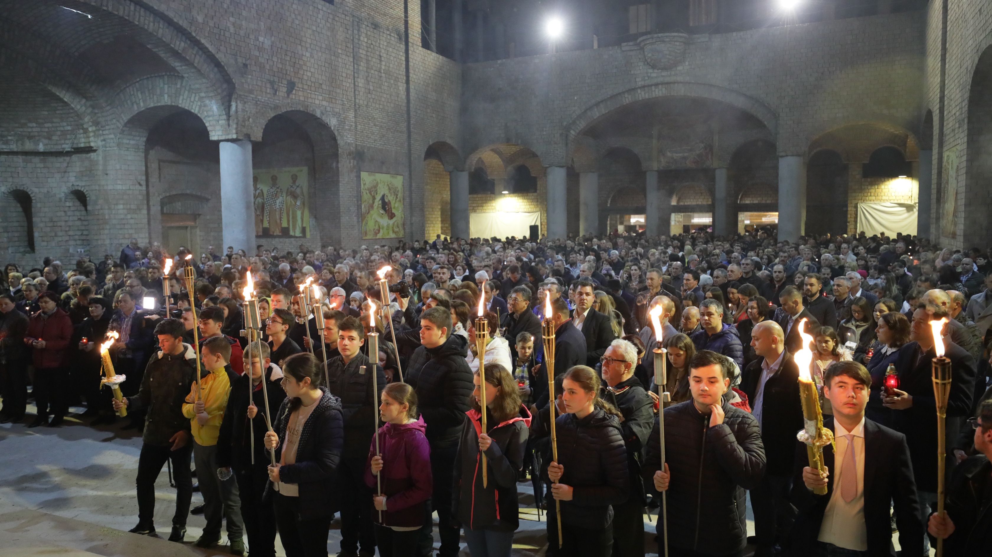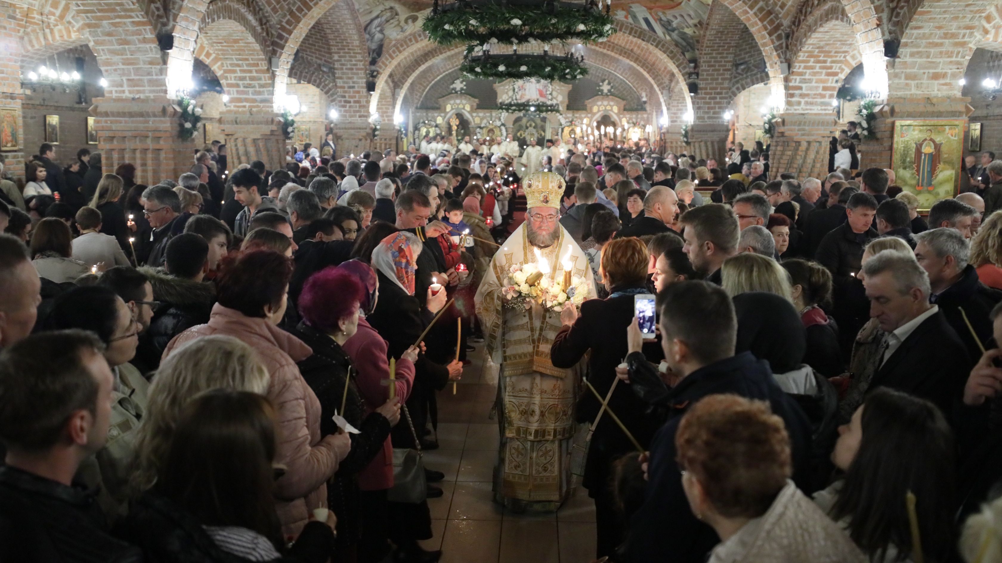 Credincioşii, veniţi în număr foarte mare la Catedrala Episcopală, au primit Sfânta Lumină direct din mâinile Întâistătătorului Eparhiei, Preasfinţitul Părinte Episcop Iustin, care i-a îndemnat să ia Lumina după o tradiţie foarte veche a Bisericii Ortodoxe.