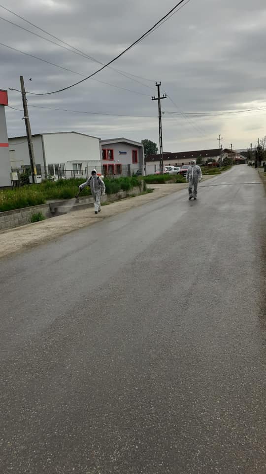 „O nouă acțiune de dezinfecție a străzilor și imobilelor din zonele cu persoane carantinate și izolate din comuna din cauza Covid-19.Ne interesează sănătatea cetățenilor comunei.