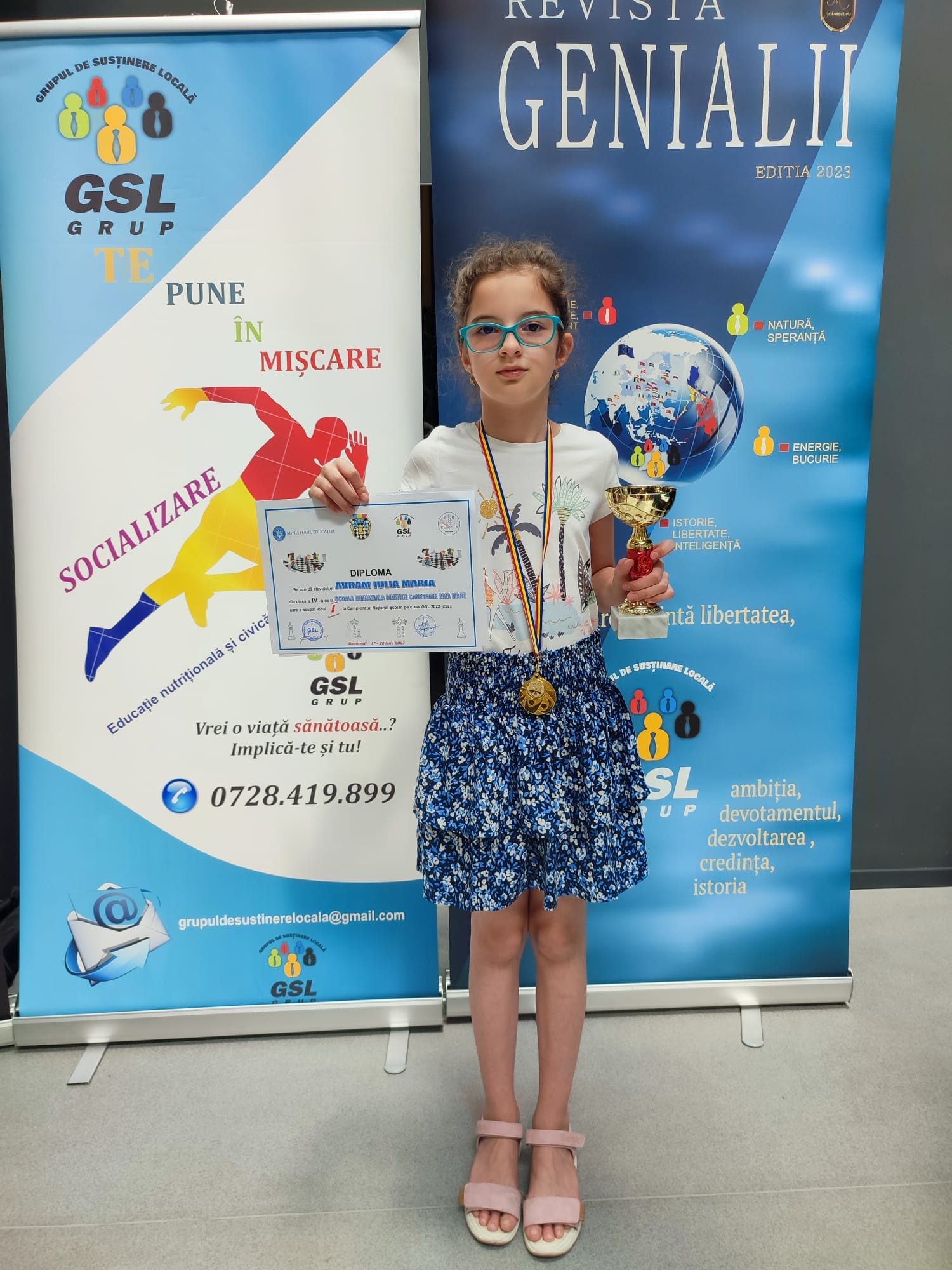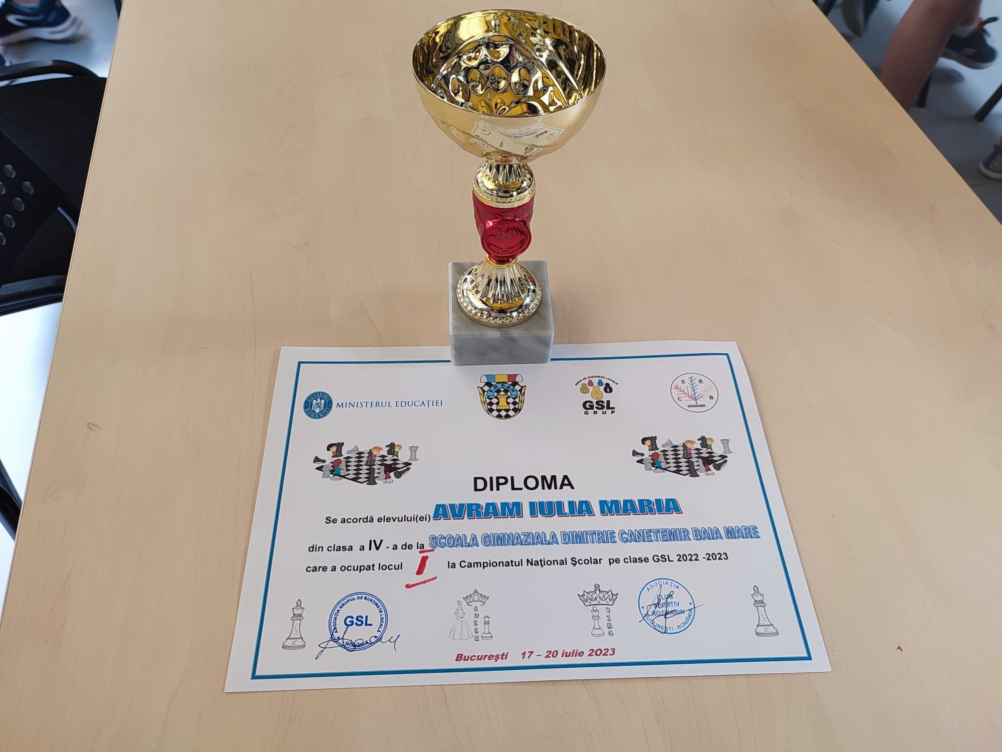 Campionatul Național Școlar de Șah pe clase GSL: Iulia-Maria Avram, eleva Școlii „Dimitrie Cantemir” Baia Mare, locul I la fete clasele a III-a și a IV-a.