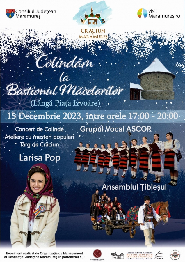 Sărbătorile de iarnă sunt un bun prilej de a uni comunitățile, de a le apropia de tradițiile și obiceiurile care dăinuie din străbuni. În acest sens, Organizația de Management al Destinației Județene Maramureș, alături de Consiliul Județean Maramureș, vă îndeamnă să primiți cu multă căldură în suflet colindele din cadrul celui mai nou eveniment de Crăciun din Maramureș, ”Colindăm la Bastionul Măcelarilor”.