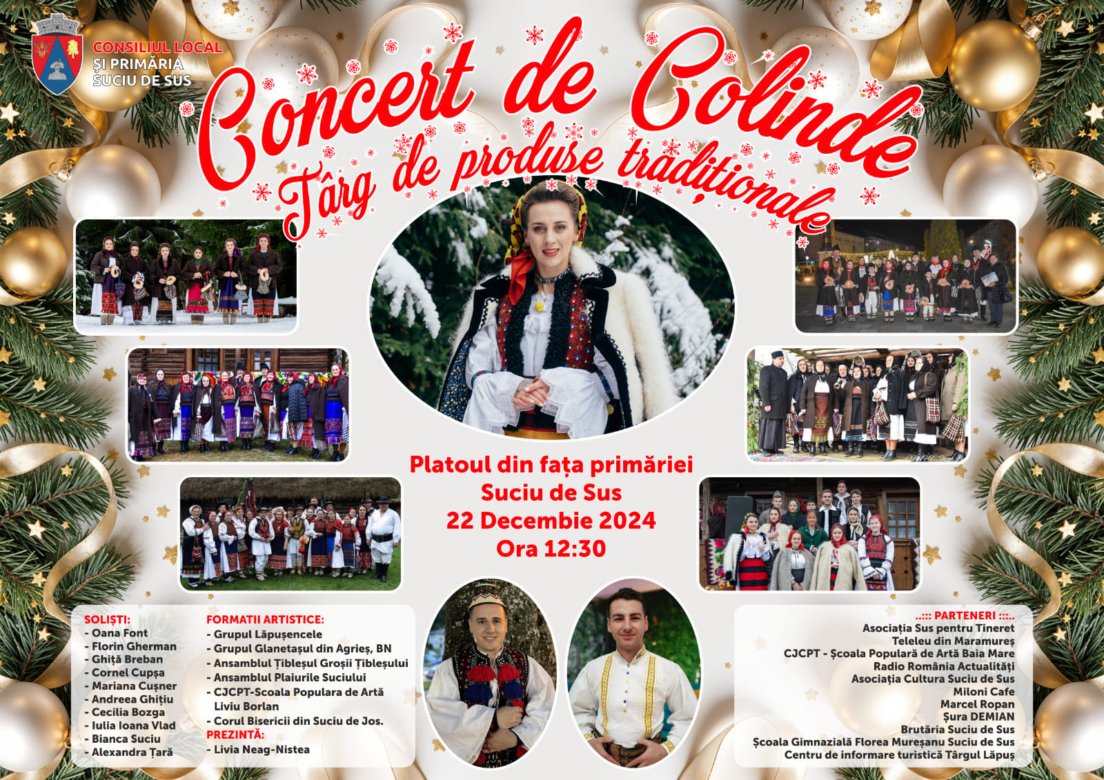 Duminică, 22 decembrie, de la ora 12.30, în Suciu de Sus, pe platoul din fața primăriei, se va desfășura un concert de colinde și un târg de produse tradiționale.