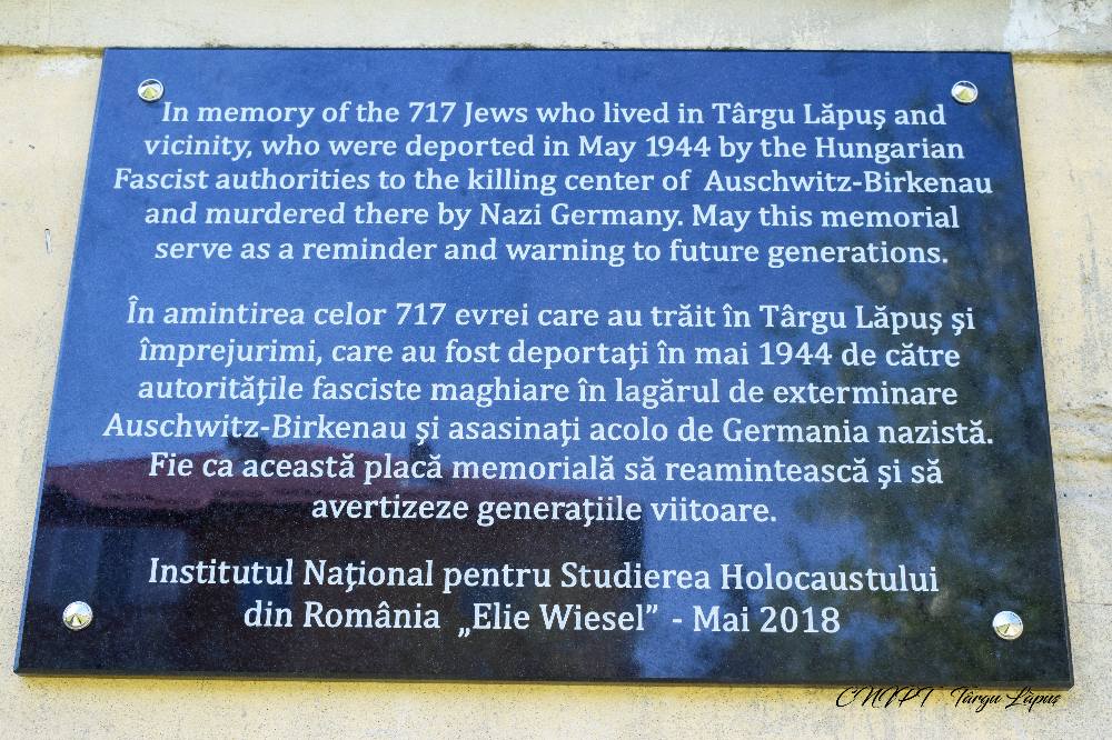 În anul 2018, a avut loc ceremonia de dezvelire a Plăcii Memoriale pe locul unde a existat fosta Sinagogă. Aceasta a fost instalată în memoria celor 717 evrei care au trăit în Târgu Lăpuș și vecinătăți, și care au fost deportați în luna mai – anul 1944 de către Autoritățile Fasciste Maghiare la centrul Auschwitz Birkenau, fiind ucise de Germania Nazistă, transmite Centrul de Informare Turistică Târgu Lăpuș.