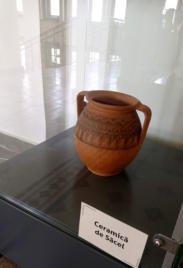În vitrinele Centrului Cultural Pastoral se găsesc și câteva exponate reprezentând ceramica de Săcel.