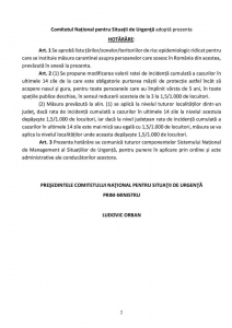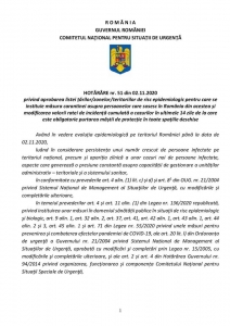 Comitetul Național pentru Situații de Urgență a adoptat în ședința de luni, 2 noiembrie, Hotărârea cu numărul 51.