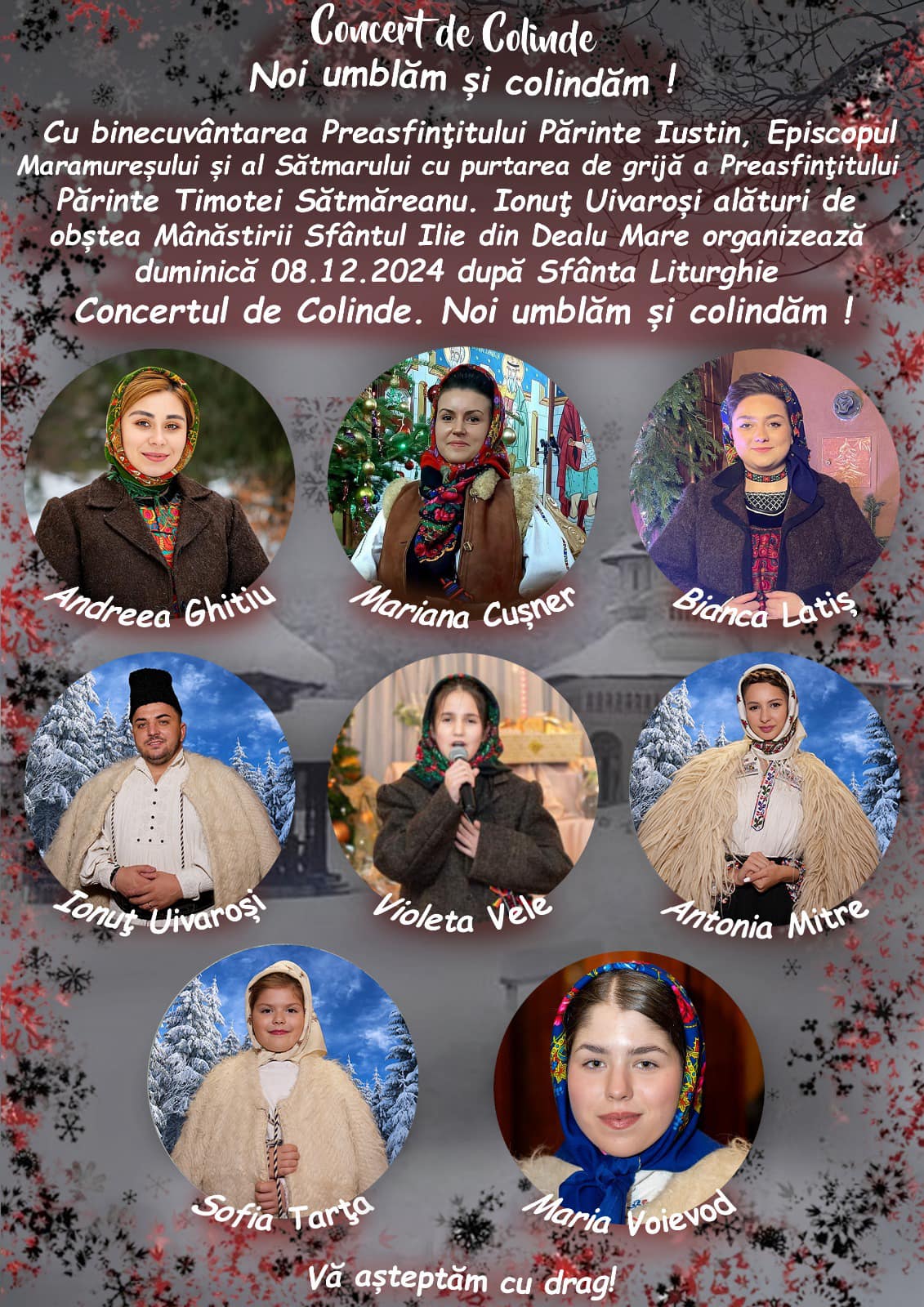 Acesta se intitulează „Noi umblăm și colindăm” și este organizat cu binecuvântarea Preasfințitului Părinte Iustin și cu purtarea de grijă a Preasfințitului Părinte Timotei Sătmăreanul de artistul Ionuț Uivaroși și obștea lăcașului de cult.