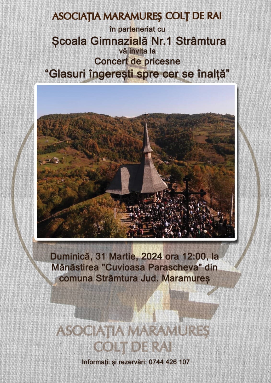 „Vă invităm la primul concert de pricesne, organizat de către noi, ca împreună să înălțăm spre cer rugăciuni de care avem cu toții nevoie, mai mult decât oricând.
